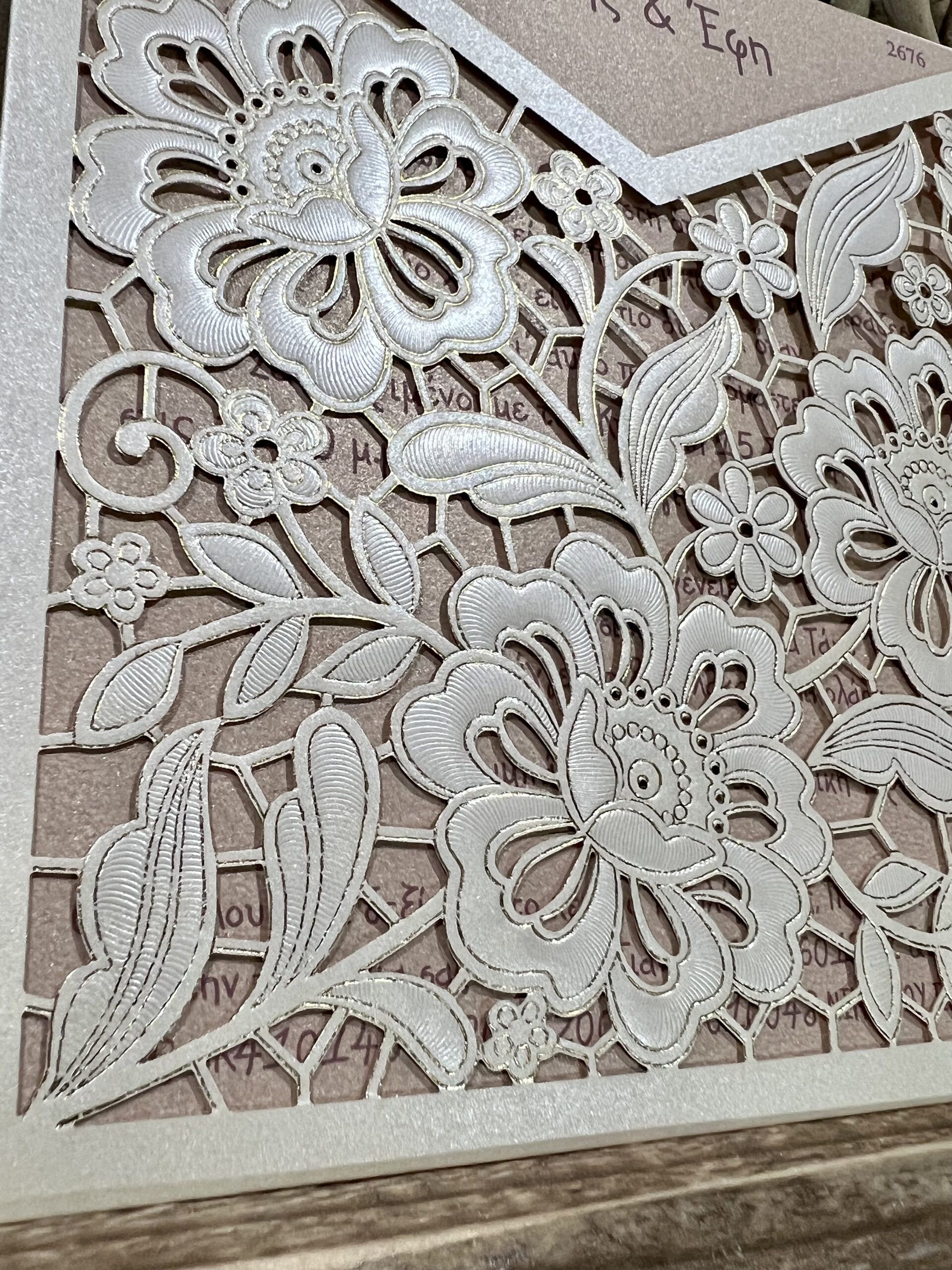 | Επεξεργασία | Laser cut, Γκοφρέ σχέδιο, Μορφοκοπή, Χρυσοτυπία |