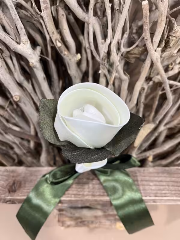 Μπομπονιέρα γάμου λουλούδι σατέν με σατέν κορδέλα 4εκ.
