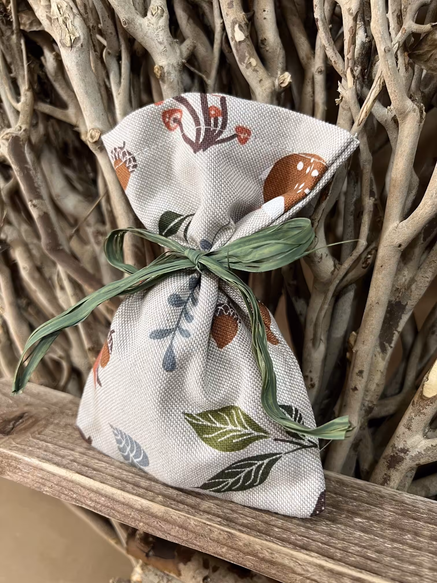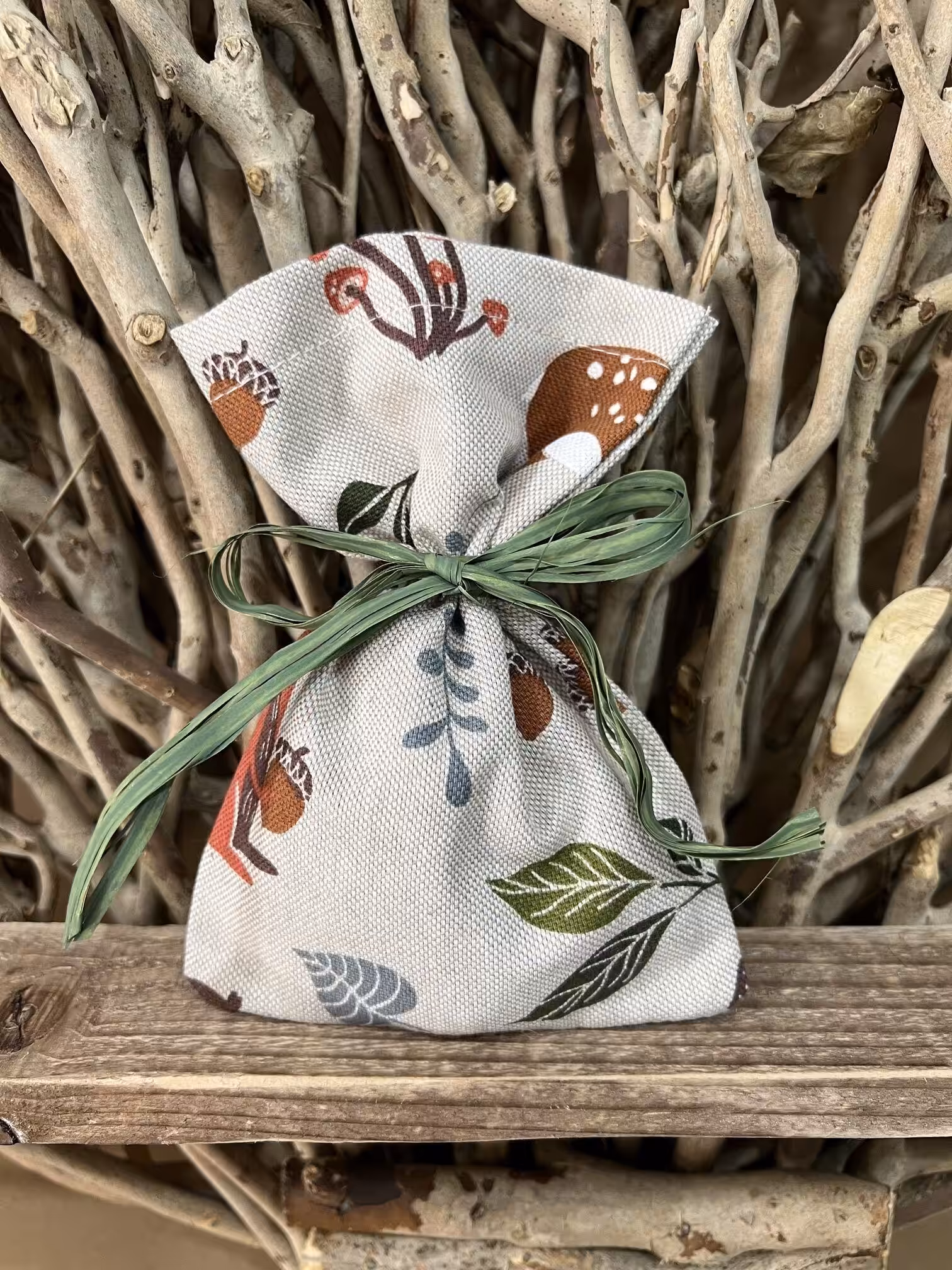 Μπομπονιέρα βάπτισης πουγκί – forest με φιόγκο.