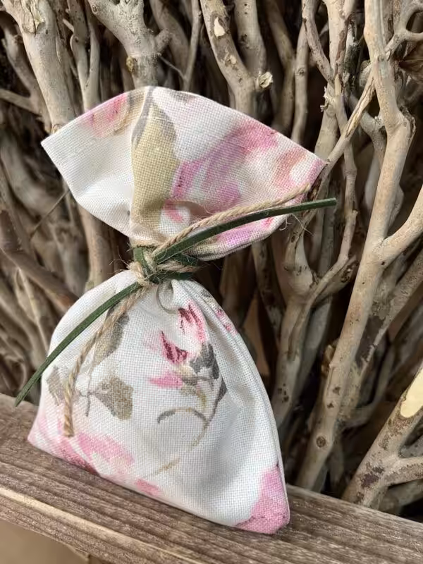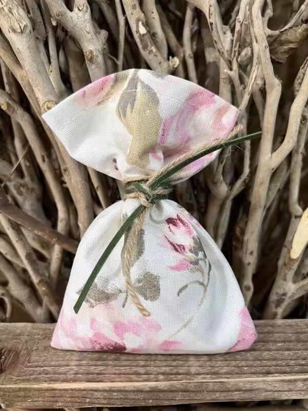 Μπομπονιέρα βάπτισης πουγκί κλασικό φλοράλ εκρού.