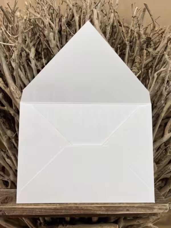 Φάκελος κλασικός παραλληλόγραμμος με μύτη, μεσαίου μεγέθους, διάστασης 22χ16, σε χαρτί Acquerello Bianco 280 gr.
