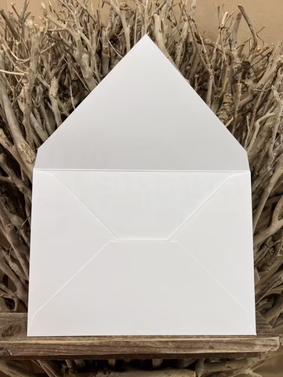 [mc4wp_form id="4607"]Φάκελος κλασικός παραλληλόγραμμος με μύτη, μεσαίου μεγέθους, διάστασης 22χ16, σε χαρτί Acquerello Bianco 280 gr.