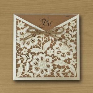 Προσκλητήριο γάμου – βάπτισης σε χαρτί περλέ κρεμ με θέμα πατουσάκια.