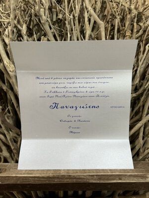 Προσκλητήριο βάπτισης 3πτυχο σε καρό χαρτί μέταλ και διακόσμηση με κορδονάκι.