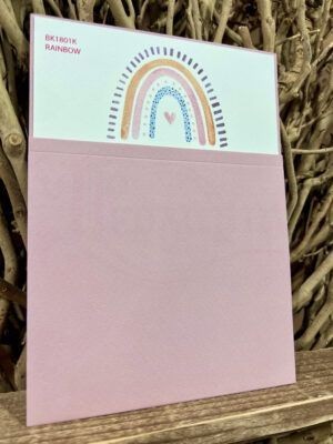 Προσκλητήριο βάπτισης με θέμα ουράνιο τόξο, σε παστέλ αποχρώσεις και watercolor πινελιές, με συρταρωτή θήκη, από ματ χαρτιά σε θήκη και κάρτα.